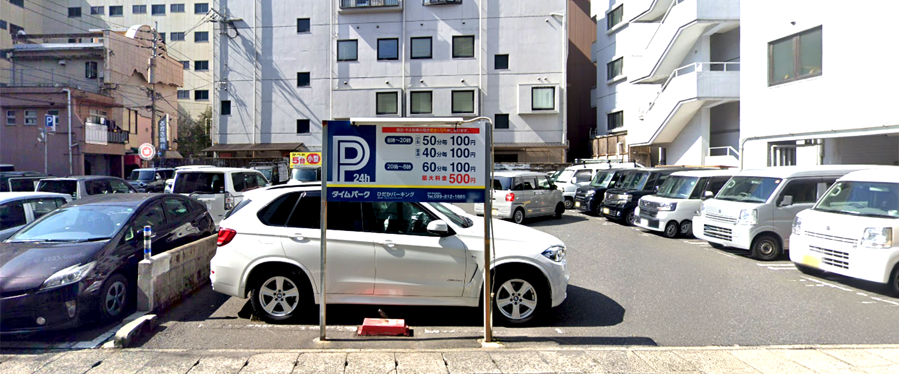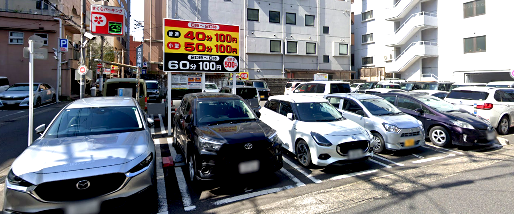 南洲館駐車場内へ駐車の場合、限定1台500円で駐車していただけます。満車の場合や、できるだけお安く駐車したい場合には以下がおすすめです。